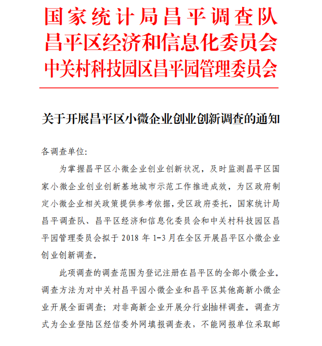关于开展昌平区小微企业创业创新调查的通知